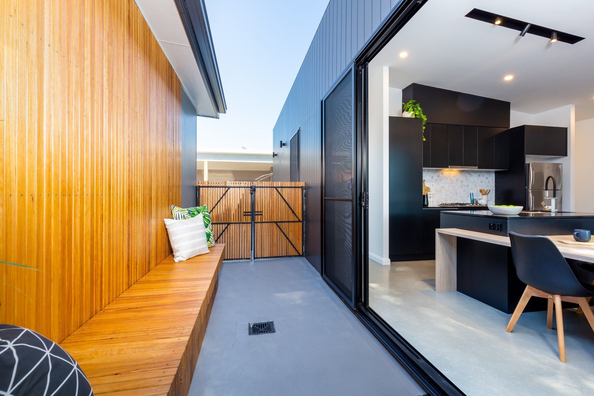 This stunning custom design really makes you feel like you're standing in a home (not a flat) with its seamless floor plan and gorgeous outside undercover entertaining area.